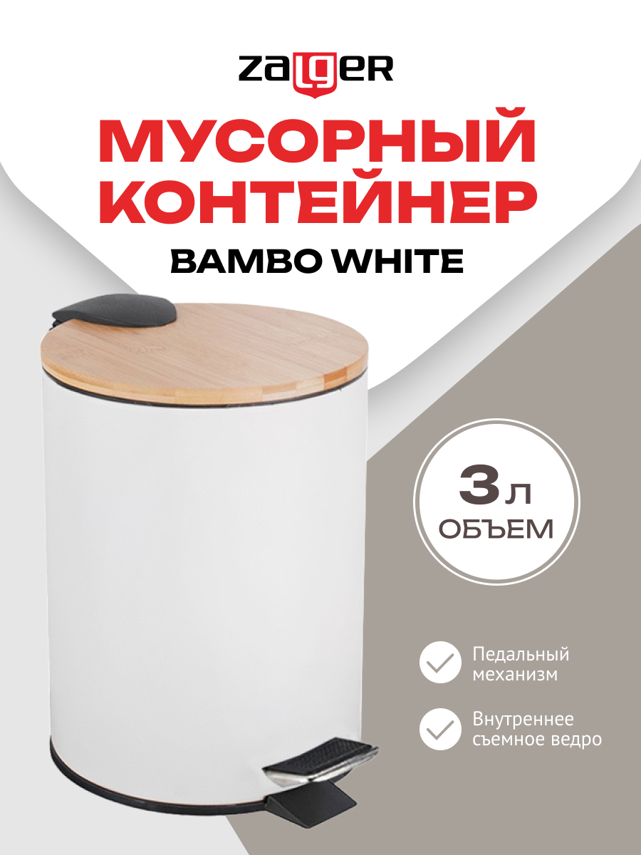 Мусорный контейнер Bambo, белый, 3л., Zalger, арт. R052-03white